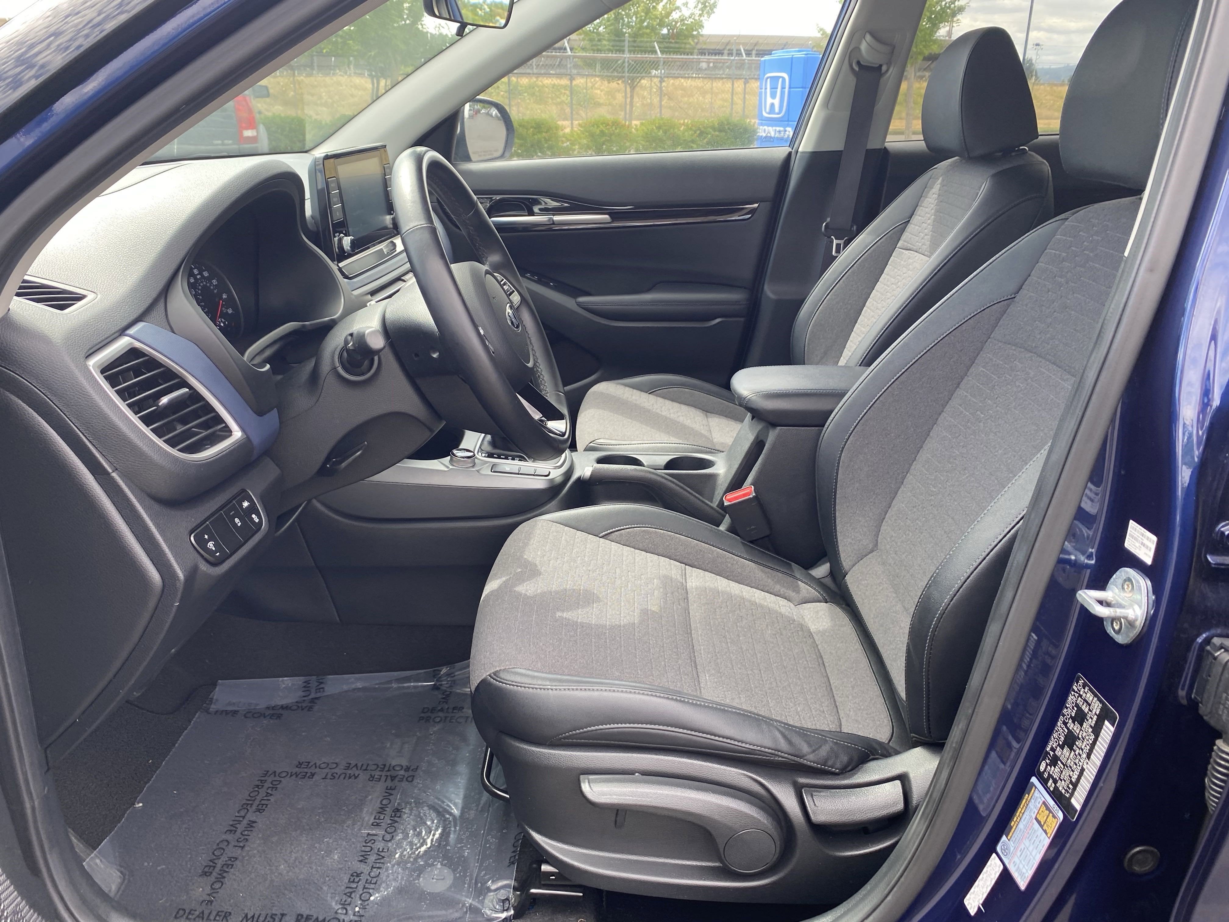 Best looking Seltos AWD on the market with lots of safety options!! 2021 Kia Seltos S Dark Ocean Blue/White Roof AWD CVT 2.0L I4 MPILEATHER INTERIOR, FULLY SERVICED/MAINTAINED, COLD WEATHER PACKAGE WITH HEATED SEATS, Glossy Black Door Garnish Package, Glossy Black Door Garnishes, 4-Wheel Disc Brakes, 6 Speakers, 6.052 Axle Ratio, ABS brakes, Air Conditioning, Alloy wheels, AM/FM radio, Apple CarPlay & Android Auto, Brake assist, Bumpers: body-color, Cargo Net (Floor), Carpeted Floor Mats, Combination Sofino & Cloth Seat Trim, Delay-off headlights, Driver door bin, Driver vanity mirror, Dual front impact airbags, Dual front side impact airbags, Electronic Stability Control, Exterior Parking Camera Rear, Four wheel independent suspension, Front anti-roll bar, Front Bucket Seats, Front Center Armrest, Front fog lights, Front reading lights, Fully automatic headlights, Heated door mirrors, Heated Front Bucket Seats, Heated front seats, Illuminated entry, Leather Shift Knob, Low tire pressure warning, Occupant sensing airbag, Outside temperature display, Overhead airbag, Overhead console, Panic alarm, Passenger door bin, Passenger vanity mirror, Power door mirrors, Power steering, Power windows, Radio: AM/FM/MP3 Display Audio, Rear seat center armrest, Rear window defroster, Rear window wiper, Remote keyless entry, Security system, Speed control, Speed-sensing steering, Split folding rear seat, Spoiler, Steering wheel mounted audio controls, Tachometer, Telescoping steering wheel, Tilt steering wheel, Traction control, Trip computer, Turn signal indicator mirrors, Variably intermittent wipers, Wheels: 17 Alloy w/Dark Gray Finish, **APPLE CARPLAY/ ANDROID**, **AUTOMATIC HEADLIGHTS**, **BACKUP CAMERA**, **BLINDSPOT MONITOR**, **Bluetooth®**, **COLLISION AVOIDANCE **, **LANE KEEPING ASSIST**, Glossy Black Door Garnish Package, Glossy Black Door Garnishes.Recent Arrival!27/31 City/Highway MPGCome to www.dickshillsborohonda.com To See Our Specials!! Call us at (503) 735-7310 For help with any of our departments!! We gave it a full lube-oil-filter service, pressure tested the coolant/antifreeze system for leaks & protection, checked the brakes & tires, checked all parts/systems for excessive wear & tear, topped off needed fluids, detailed the vehicle and gave it a thorough diagnostic/frame/safey inspection!