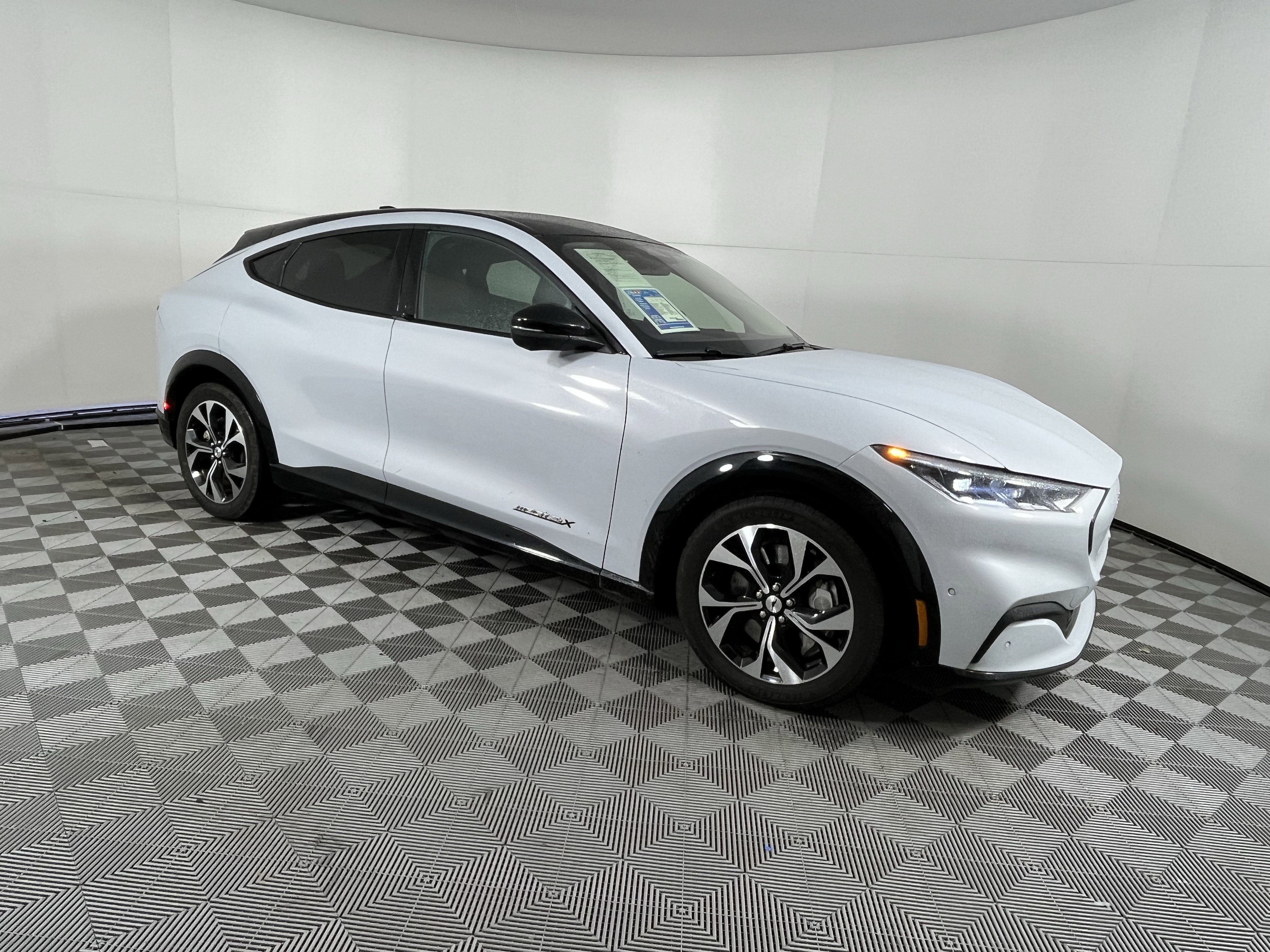 White Metallic AWD Dual Electric Motor Single-Speed Automatic 10 Speakers, 4-Wheel Disc Brakes, ABS brakes, Active Park Assist Prep Kit, Air Conditioning, Alloy wheels, AM/FM radio: SiriusXM with 360L, AM/FM Stereo, Apple CarPlay/Android Auto, Auto High-beam Headlights, Auto-dimming Rear-View mirror, Automatic temperature control, Axle Ratio: 9.05, Brake assist, Bumpers: body-color, Cargo Area Protector, Compass, Delay-off headlights, Driver door bin, Driver vanity mirror, Dual front impact airbags, Dual front side impact airbags, Electronic Stability Control, Emergency communication system: 911 Assist, Equipment Group 300A, Exterior Parking Camera Rear, Four wheel independent suspension, Front & Rear Floor Liners, Front anti-roll bar, Front Bucket Seats, Front Center Armrest, Front dual zone A/C, Front License Plate Bracket, Front reading lights, Fully automatic headlights, Garage door transmitter, Heated door mirrors, Heated front seats, Heated Perforated ActiveX Bucket Seats, Heated steering wheel, Illuminated entry, Interior Protection Package (Pre-Installed), Knee airbag, Low tire pressure warning, Memory seat, Navigation system: Connected Navigation, Occupant sensing airbag, Outside temperature display, Overhead airbag, Overhead console, Panic alarm, Passenger door bin, Passenger vanity mirror, Power door mirrors, Power driver seat, Power Liftgate, Power passenger seat, Power steering, Power windows, Radio data system, Rain sensing wipers, Rear anti-roll bar, Rear seat center armrest, Rear side impact airbag, Rear window defroster, Rear window wiper, Remote keyless entry, Security system, SiriusXM Radio w/360L, Speed control, Speed-sensing steering, Speed-Sensitive Wipers, Split folding rear seat, Spoiler, Steering wheel mounted audio controls, SYNC 4A w/Enhanced Voice Recognition, Telescoping steering wheel, Tilt steering wheel, Traction control, Trip computer, Turn signal indicator mirrors, Variably intermittent wipers, Wheels: 19 Machined-Face Aluminum, Ask now about our incredible inventory sell down sale, With over 60 lenders to work with, we can get you the best financing with flexible terms available. CARFAX One-Owner.You even get it with our 3 month/4,000 mile Royal Shield used car warranty! You also get free 24-hour roadside assistance, a free Carfax history report, a free comprehensive 50-point vehicle inspection with shop checklist, rental car reimbursement & more! Why gamble with other used cars without a warranty when we offer the same kinds of cars WITH a warranty included?