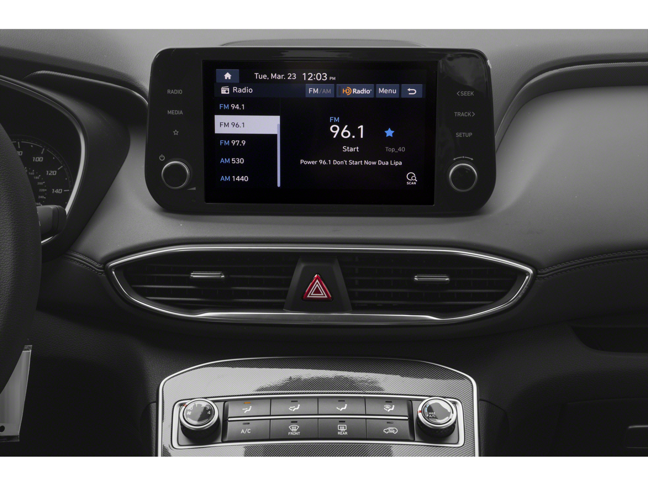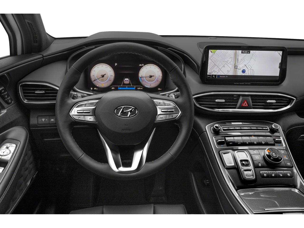 - Radio: AM/FM Harman Kardon Display Audio -inc: 10.25" display screen, Apple CarPlay and Android Auto, Bluetooth hands-free w/wireless audio streaming, steering wheel audio and phone controls, dual front USB ports, SiriusXM, HD Radio, Blue Link connected car system, 12 speakers including subwoofer, external amplifier, Clari-Fi music restoration technology, QuantumLogic surround, navigation system w/traffic flow including incident data via HD Radio (HERE), rear seat quiet mode and wireless device charging