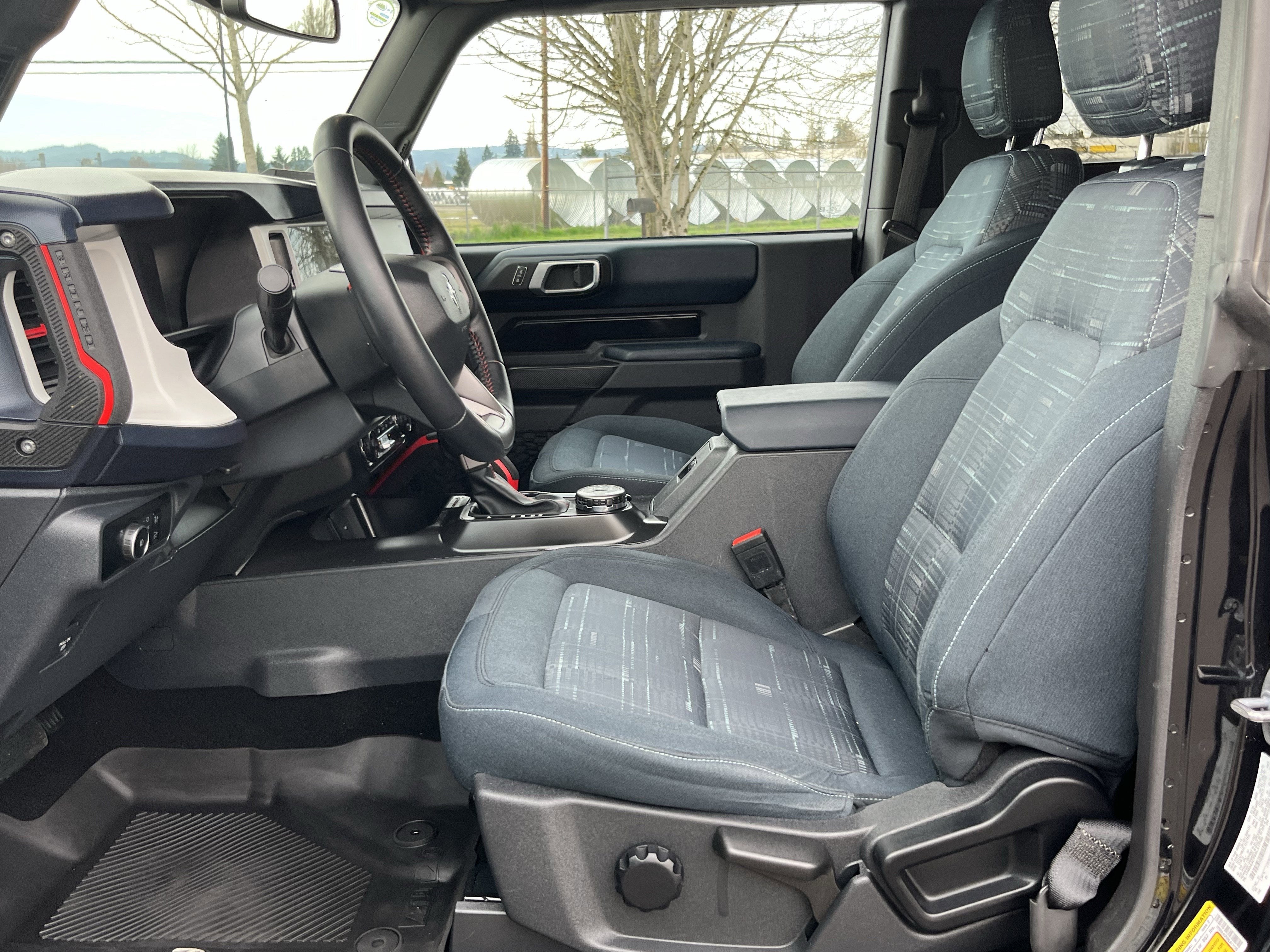 One owner Hardtop Heritage 2dr with a classic look and new tires. 2024 Ford Bronco Heritage Edition Shadow Black 4WD 10-Speed Automatic 2.7L EcoBoost V61-OWNER!, CLEAN CARFAX: NO ACCIDENTS, **NEW TIRES**, FULLY SERVICED/MAINTAINED, Convertible HardTop, **Equipment Group 662A Mid Package & Sasquatch Package**, 4-Wheel Disc Brakes, 7 Speakers, ABS brakes, Air Conditioning, Alloy wheels, AM/FM radio: SiriusXM with 360L, AM/FM Stereo, Auto High-beam Headlights, Auto-dimming Rear-View mirror, Automatic temperature control, Brake assist, Cargo Area Protector, Compass, Connected Navigation, Convertible roof lining, Delay-off headlights, Driver door bin, Driver vanity mirror, Dual front impact airbags, Dual front side impact airbags, Electronic Stability Control, Emergency communication system: 911 Assist, Exterior Parking Camera Rear, Front anti-roll bar, Front Bucket Seats, Front Center Armrest, Front dual zone A/C, Front fog lights, Front License Plate Bracket, Front reading lights, Front wheel independent suspension, Fully automatic headlights, Glass rear window, Heated door mirrors, Heated front seats, Illuminated entry, Integrated roll-over protection, Leather Shift Knob, Low tire pressure warning, Navigation system: Connected Navigation, Occupant sensing airbag, Outside temperature display, Overhead airbag, Overhead console, Panic alarm, Passenger door bin, Passenger vanity mirror, Plaid Cloth Front Heated Bucket Seats, Power door mirrors, Power steering, Power windows, Radio data system, Rear window defroster, Rear window wiper, Remote keyless entry, Security system, SiriusXM Radio w/360L, Speed control, Split folding rear seat, Steering wheel mounted audio controls, SYNC 4, Tachometer, Telescoping steering wheel, Tilt steering wheel, Traction control, Trip computer, Variably intermittent wipers, Wheels: 17 Unique White, Convertible HardTop, Equipment Group 662A Mid Package.Recent Arrival!You get the peace of mind with our Royal Shield used vehicle limited warranty.You also get free 24-hour roadside assistance, rental coverage reimbursement , a free Carfax report, a free 50-point vehicle inspection, a copy of our inspection checklist & more! Why buy an used car without warranty, when you can buy ours and get this amazing coverage?
