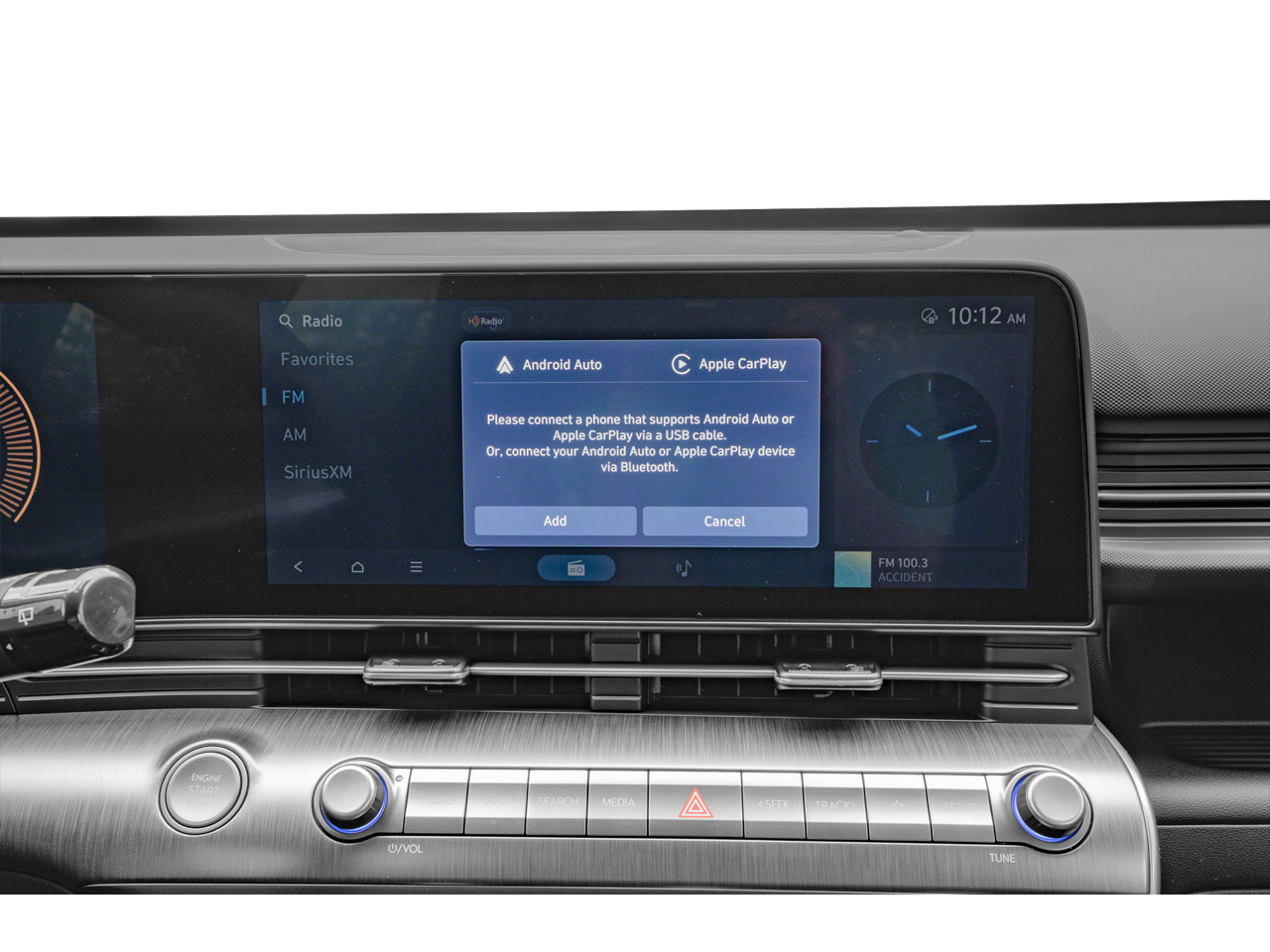 - Radio: AM/FM/HD Radio/SiriusXM Audio System -inc: 12.3" touchscreen audio display, Bluetooth®, 6 speakers, Android Auto and Apple CarPlay compatibility (wireless), Bluelink connected car system, OTA software updates and USB connectivity