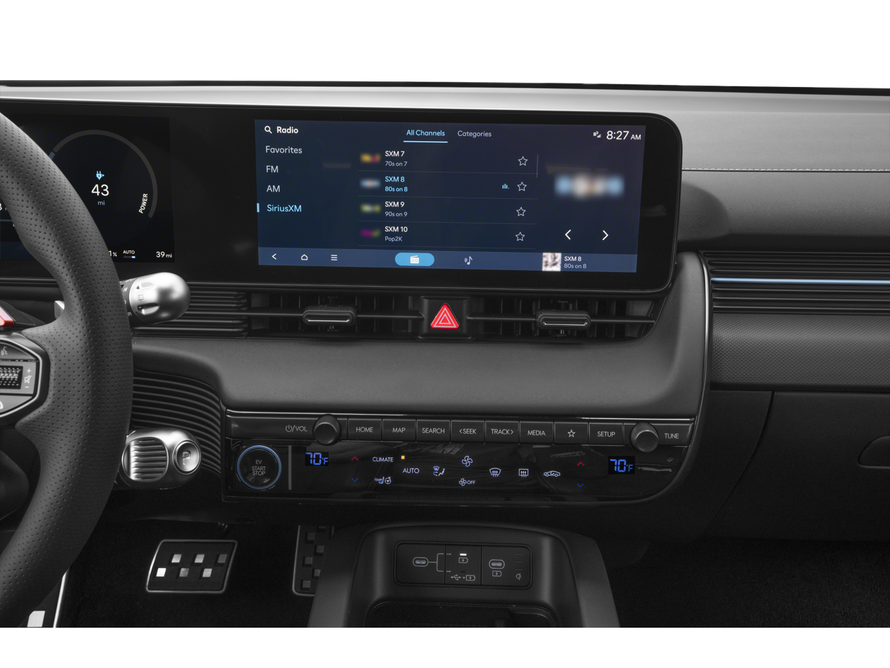 - Radio: AM/FM/SiriusXM/HD Display Audio System -inc: 12.3" ccNC navigation w/EV technology display, Bose premium audio system w/8 speakers, wireless Android Auto and Apple CarPlay, Blue Link connected car system w/remote charge access, Bluetooth w/phonebook transfer, dynamic voice recognition, Hyundai Pay, USB connectivity and Wi-Fi hotspot